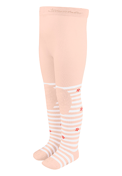 Minkštos ir švelnios ABS ropojimo pėdkelnės puikiai tinka ropojantiems mažyliams. Ant pėdkelnių padukų, kelties ir keliukų yra silikoninės aplikacijos, kurios sukimba su grindų paviršiumi ir neleidžia kojytėms slysti. Taip mažyliui daug lengviau ropoti – jis neslysta atgal. Šios pėdkelnės tinka šiltesniems orams, nes yra vieno sluoksnio, be pašiltinimo. Pėdkelnių sudėtyje yra net 85 % medvilnės. Tai higieniškas, nealergizuojantis, odai kvėpuoti leidžiantis audinys, todėl pėdkelnės tinka ir jautrią odą turintiems vaikams. Vaikiškų pėdkelnių viduje, ties keliukais ir pėdutėmis, yra minkštutis frotinis paminkštinimas, kuris suteikia ypatingą komfortą ropojant. Užpakaliuko srityje yra dvi siūlės, kad vaikui būtų patogu ir niekur neveržtų. Pėdkelnių viršuje esanti gumelė gerai priglunda prie vaiko kūno ir prilaiko, kad jos nesmuktų. Pėdkelnės tamprios, gerai priglunda prie kojyčių ir nevaržo judesių. Pėdkelnės vaikams papuoštos gėlytėmis bei ant užpakaliuko esančiu banginiu ir vėžliuku. Pėdkelnes vaikams rekomenduojama skalbti išvertus į blogąją pusę.