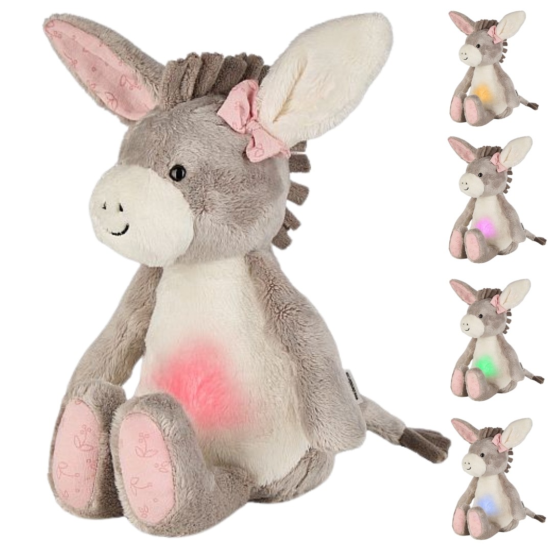 Padėkite savo kūdikiui nusiraminti ir lengviau užmigti su Sterntaler minkštu žaislu su naktine lempute. Tai užmigimo pagalbininkas, saugotojas ir naktinis draugas. Raminanti švieselė padeda kūdikiui užmigti ir dėl „snaudimo režimo“ automatiškai išsijungia po 30 minučių. Naktinės lempos modulis šviečia visomis vaivorykštės spalvomis arba pasirinktomis atskiromis spalvomis. Galite pasirinkti net iš 20 melodijų ir garsų kaip kad baltas triukšmas (White Noise), mamos širdies plakimas ir kt. Švelnios melodijos padeda vaikučiui greičiau užmigti, o pastovus garsas primena garsus, kuriuos kūdikis girdėjo mamos pilve – tai suteikia jaukumo ir saugumo. Kai melodijos groja kas vakarą prieš miegą, jos tampa signalu, kad „laikas ilsėtis“ – tai padeda kūdikiui greičiau prisitaikyti prie miego režimo.