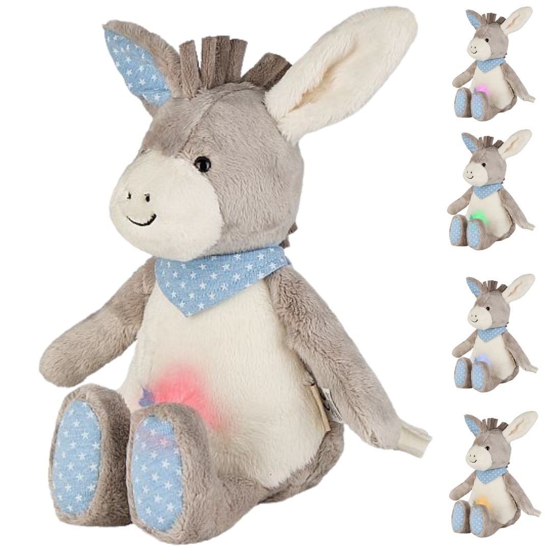 Padėkite savo kūdikiui nusiraminti ir lengviau užmigti su Sterntaler minkštu žaislu su naktine lempute. Tai užmigimo pagalbininkas, saugotojas ir naktinis draugas. Raminanti švieselė padeda kūdikiui užmigti ir dėl „snaudimo režimo“ automatiškai išsijungia po 30 minučių. Naktinės lempos modulis šviečia visomis vaivorykštės spalvomis arba pasirinktomis atskiromis spalvomis. Galite pasirinkti net iš 20 melodijų ir garsų kaip kad baltas triukšmas (White Noise), mamos širdies plakimas ir kt. Švelnios melodijos padeda vaikučiui greičiau užmigti, o pastovus garsas primena garsus, kuriuos kūdikis girdėjo mamos pilve – tai suteikia jaukumo ir saugumo. Kai melodijos groja kas vakarą prieš miegą, jos tampa signalu, kad „laikas ilsėtis“ – tai padeda kūdikiui greičiau prisitaikyti prie miego režimo.