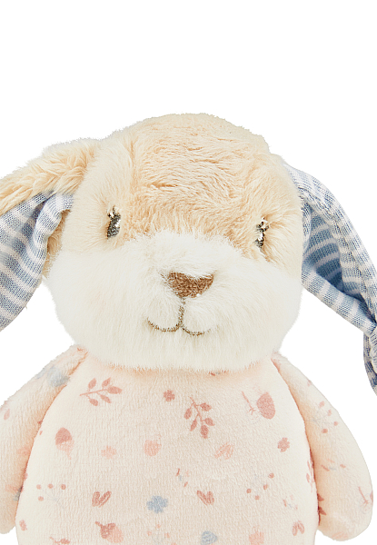 Minkštas, pliušinis kiškutis. Žaislas pagamintas iš minkštų medžiagų, suapvalintų formų ir puikiai suderintų spalvų - kaip tik tai, ko reikia mažyliui. Žaislas švelnus, jį malonu glausti, todėl žaislas tikrai taps geriausiu vaiko draugu, visur keliaujančiu kartu su mažyliu. Skirtingos žaislo medžiagos lavina mažylio lytėjimą.