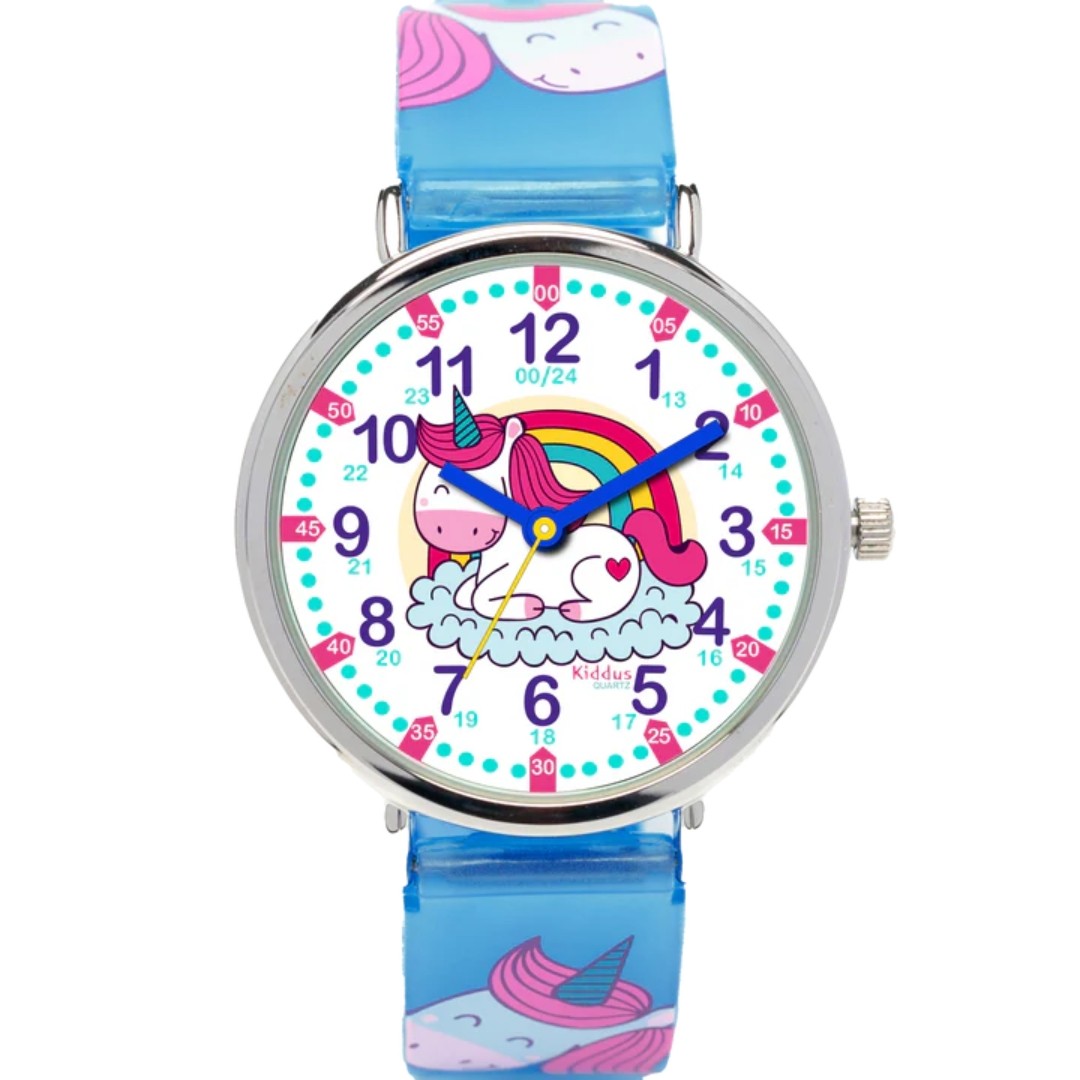 Vaikiški laikrodžiai padeda vaikams lengvai išmokti pažinti laiką. Pagaminti iš hipoalerginių, BPA neturinčių medžiagų, jie yra saugūs ir patogūs vaikams nuo 5 metų. Patvarūs, lankstūs dirželiai ir lengvai įskaitomas ciferblatas leidžia mokytis ir suprasti laiko skaičiavimą smagiai, žaismingai ir be didelių pastangų. Šis laikrodis turi 5 ATM atsparumą vandeniui, todėl yra pritaikytas vaikų kasdienybei: rankų plovimui, lietui ir žaidimams. Tamsoje šviečiantis laikrodis patiks ne tik vienaragių mylėtojams, bet ir visiems, kurie mėgsta žaismingus ir stilingus aksesuarus, kurie išsiskiria. :)