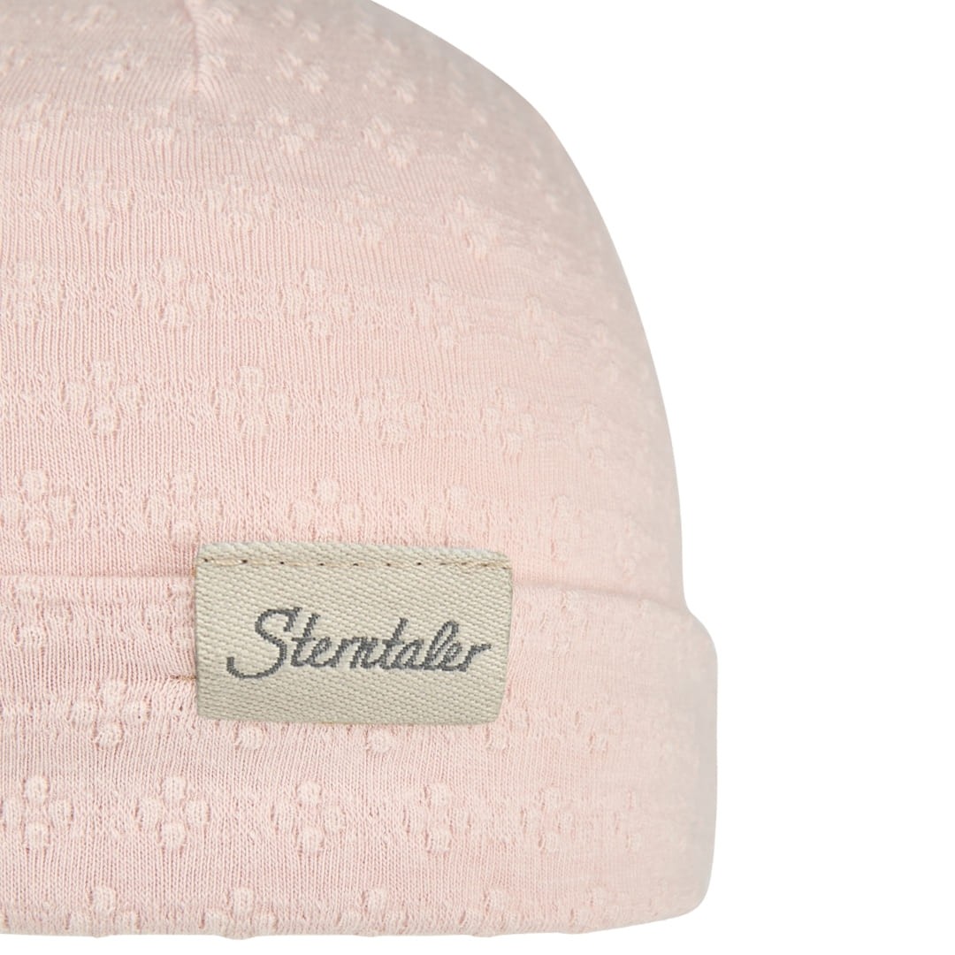 Vienspalvė beanie kūdikių kepurė pagaminta iš sertifikuotos „Oeko-Tex 100“ medžiagos, todėl neturi kenksmingų medžiagų ir pasižymi itin minkštu, plonu audiniu. Kepurėlė su tekstūriniais taškeliais maloniai priglunda prie mažylio odelės, o minimalistinis ir klasika tapęs beanie kepurės dizainas dera prie bet kokio aprangos derinio. Kepurė taip pat turi UV 50+ apsaugą nuo saulės spindulių ir dvigubą medžiagos sluoksnį ties ausytėmis.
