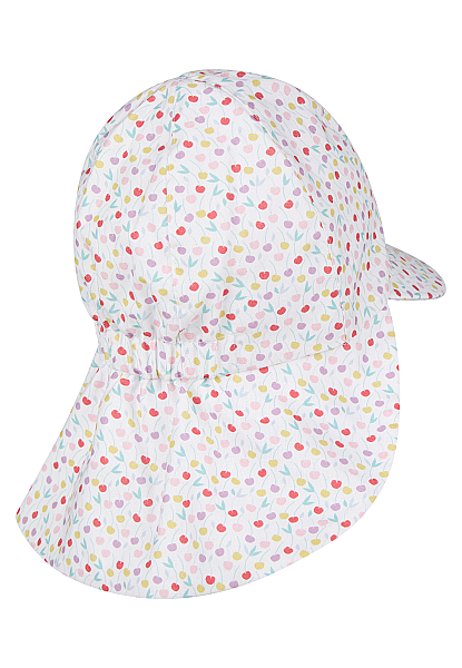 Spalvotos vyšnios ir ryškios spalvos – dizainas, kuris puošia kasdien. Vaikiška kepurė su prailginta kaklo apsauga, mini snapeliu priekyje ir UV 50+ apsauga nuo saulės spindulių. Kepurėlės galinėje dalyje yra elastinga guma, kurios dėka kepurė prisitaiko prie reikiamos apimties, o 100% medvilnės sudėtis užtikrina medžiagos pralaidumą orui. Ant smakro surišami raišteliai švelniai glunda prie odelės ir prilaiko kepurėlę net ir vėjuotą dieną.