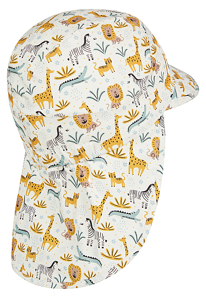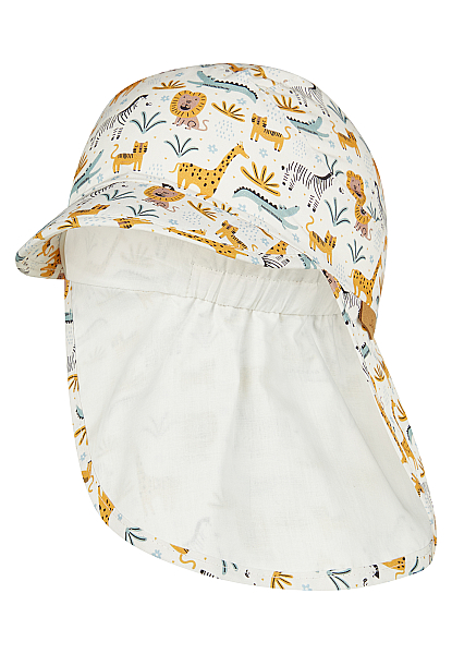Spalvingos ir žaismingos, vaikiškos kepurės su kaklo apsauga. Šios 100% medvilninės kepurėlės su gumele yra puikus pasirinkimas gyvūnų mylėtojams ir vaikams, kurie daug laiko leidžia lauke. Kepurė turi ir priekinį snapelį, kuris apsaugo veiduką nuo saulės spindulių ir sukuria visapusišką apsaugą.