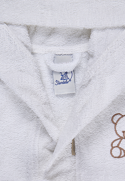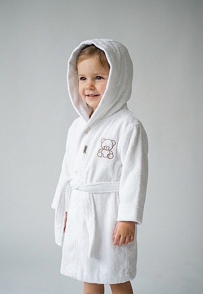 Frotinis chalatas, pagamintas iš 100% medvilnės yra patogus ir praktiškas pasirinkimas namuose, baseine ar po dušo. Natūrali, kilpinė medvilnė gerai sugeria drėgmę, leidžia odai kvėpuoti ir užtikrina šilumą bei komfortą. Kilpinė medžiaga yra minkšta, švelni ir maloni liesti, todėl chalatas puikiai tinka kasdieniam naudojimui. Patogus modelis nevaržo judesių ir leidžia vaikui jaustis jaukiai bet kuriuo metu. Šis vaikiškas chalatas yra funkcionalus sprendimas po vandens procedūrų, suteikiantis komfortą ir leidžiantis mažyliams atsipalaiduoti. Tai lengvai prižiūrimas ir ilgaamžis drabužis, kurio minimalistinis dizainas tiks tiek berniukams, tiek mergaitėms. Priekyje yra dvi talpios kišenės, per liemenį sujuosiamas diržas bei išsiuvinėtas meškiukas.