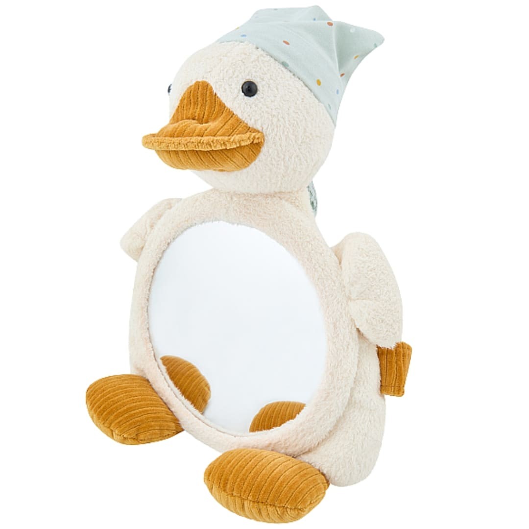 Šis mielas ir funkcionalus vaikiškas veidrodėlis sukurtas tam, kad kelionės su kūdikiu būtų saugesnės, ramesnės ir patogesnės tiek vaikui, tiek tėvams. Pliušinis žaislas su integruotu veidrodžiu gali būti tvirtinamas prie galinės automobilio sėdynės galvos atramos, todėl vairuotojas gali nuolat matyti kūdikį, o mažylis – jaustis saugiau matydamas pažįstamą atvaizdą ar tėvus. Minkštas ir saugus dizainas ne tik suteikia jaukumo, bet ir lavina smulkiąją mažylio motoriką. Šis veidrodėlis vaikams padeda užimti mažylį ir sumažinti nerimą ilgesnėse išvykose. Veidrodėlis yra saugus, lengvai pritvirtinamas ir pritaikomas įvairiose aplinkose. Puikiai tinka naudoti lovytėje, vežimėlyje, automobilyje ir turėti kambaryje, kaip interjero detalę ir minkštą žaisliuką. :)